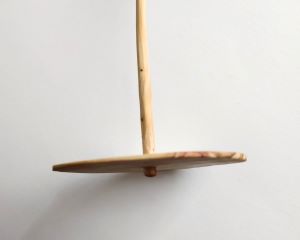 コマ型のスピンドルを作るとなると、すこし厚みのある木材が必要になるので、手軽に加工できるものとしては、軽いドロップ式スピンドルがちょうどよかったのだ。(サポート式は軽いよりはある程度しっかりしたほうがいいだろうという予想から)