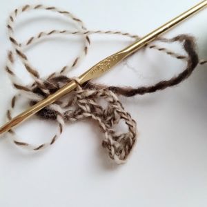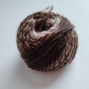 紡ぐための羊毛もないのに、youtubeで毛糸を作っている動画を見て、自分でもやってみたくなったのだ。出来上がる糸よりは、その工程に惹かれたのだろうか。道具を作ってみてほぼ満足した。そして、羊毛フェルト用の羊毛をもったいないかなと迷うも試しに紡いだのが今年の春。見様見真似で作ったスピンドルで、糸が紡げた。目標は欲しい細い糸を作ること。